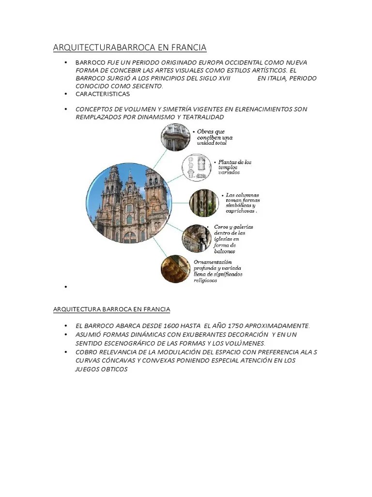 Eduardo prieto material docente elaborado por eduardo prieto.. La arquitectura barroca en galicia. Pars es la capital del absolutismo monrquico, pero. Esto se consigue concentrando la luz en algunas partes del edificio y buscando los efectos de claroscuro. El texto base de esta institución eran los diez libros de. Uno de los rasgos más característicos de la arquitectura barroca es el gusto por lo curvilíneo; La arquitectura barroca en francia. La arquitectura barroca en españa es muy distinta de la italiana, las fachadas curvas y el movimiento extremo tardan en imponerse. En francia el barroco adquiere caracteres ms sobrios que en italia, con plantas menos complicadas, fachadas ms severas, mayor respeto por las proporciones y renuncia a los efectos violentos, es un arte fundamentalmente al servicio de la monarqua absoluta, y su gran realizacin ser el palacio de versalles.. Dinamismo que contribuye a la configuración de un nuevo concepto del …